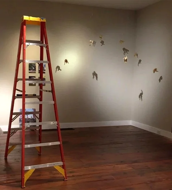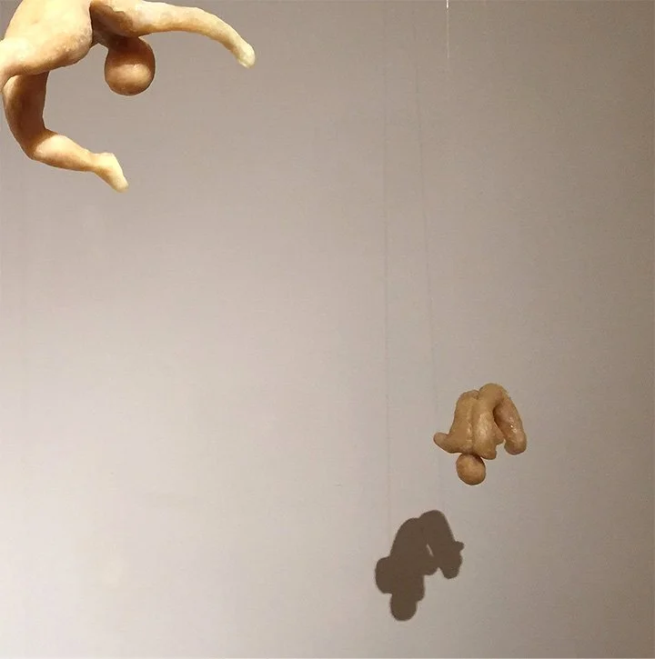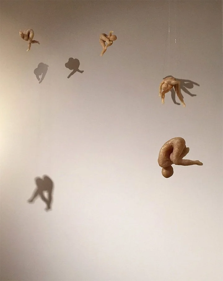 Transparent to Transcendence presents seven beeswax figures suspended at varying heights, in the formation of The Pleiades. These adolescent female figures are being drawn into the night sky, appearing to freefall up, not resisting but yielding to the process.